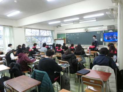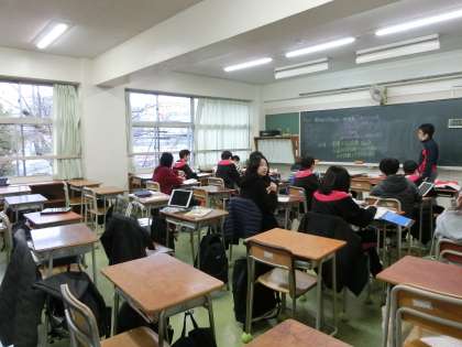 1年生の数学の少人数授業授業です。データの分析と活用の単元に入りました。