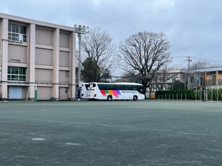 本日は桜丘小学校の6年生が遠足に行くため、南門にはバスが停車しています。