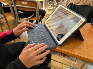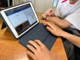 2年生の技術では、タブレットを使ってプログラミングの基礎を学習しました。