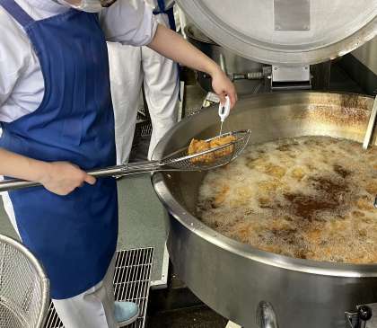大好評だった『チキンカツ』、中心温度を確認して提供しています。