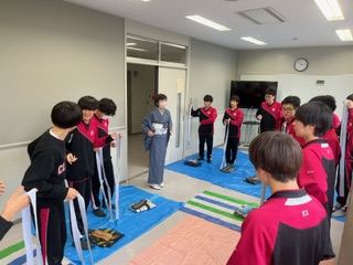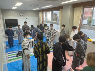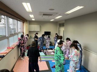 2年生の教科「日本語」では地域の方々のご協力で、ゆかたの着付けを行いました。