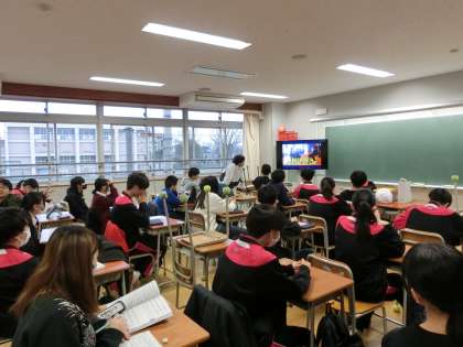 本日は生徒朝礼を行いました。先日の各種委員会の報告と表彰を動画配信いたしました。