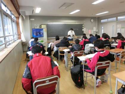 2年生の理科の授業です。今日はテストの解説と世界と日本の気候について学習しました。
