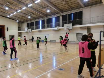 2年生の保健体育の授業です。こちらはバスケットボールを行いました。