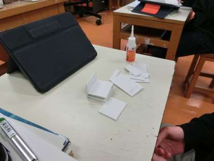 2年生の美術の授業です。ミニチュアチェアの制作を行いました。