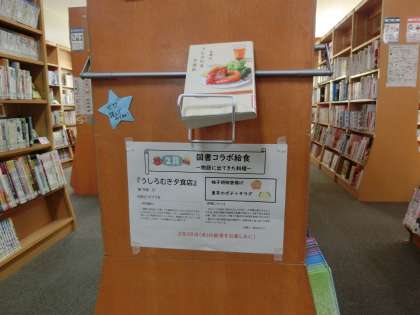 今日の給食はは今月の図書コラボ給食でした。今日は久森灯著『うしろむき夕食店』より「柚子胡椒から揚げ」と「里芋のポテトサラダ」でした。大好評でした。