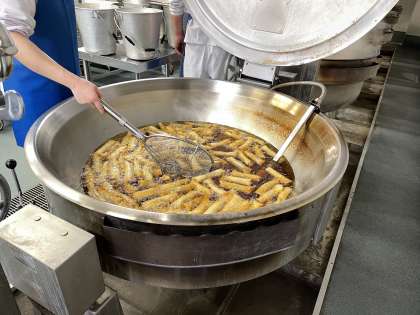 ひじき春巻きを揚げています。きれいな色で、食感もカリッとできあがりました。