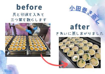大阪府の郷土料理「小田巻き蒸し」を作りました。うどんが入った茶碗蒸しで、うどんが紡ぎ糸(おだまきと呼ばれる)のように見えることからこの名がついたそうです。