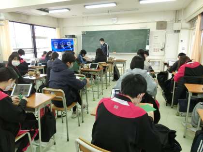 1年生の朝学活の様子です。タブレットを見ながら折り紙を折っていました。さて何に使うのかな?楽しみです。