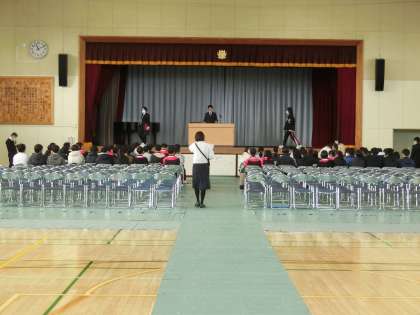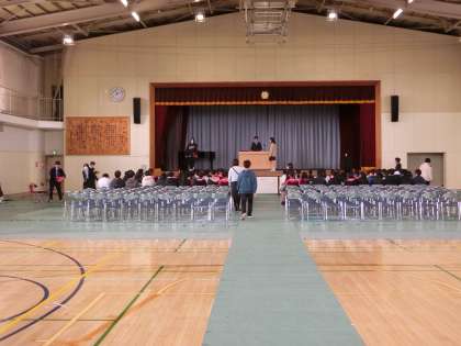 3年生のっ卒業式練習です。今日は学年を2グループに分け、呼名の練習と歌練習を交互に行いました。