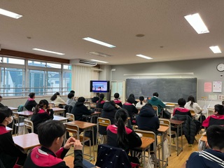 おはようございます。 本日は朝学習の時間で生徒朝礼の動画を見ました。