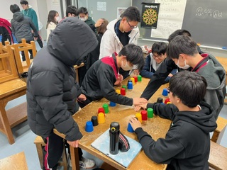 本日は雨天のため技術室でカーリング、ダーツ、クイックカップスで楽しみました。
