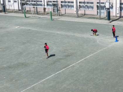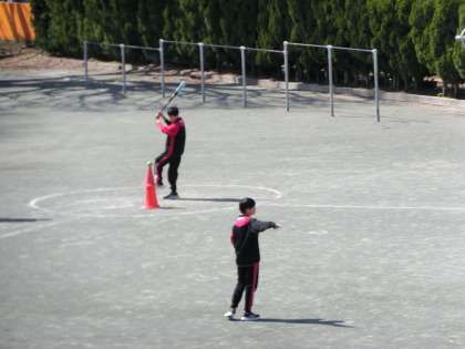 1年生の保健体育の授業です。ティーボールを試合形式で行いました。