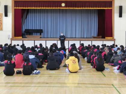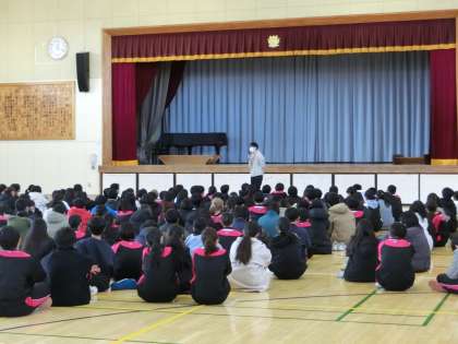2年生の学年集会の様子です。こちらも1年間を振り返って先生方一人一人からお話がありました。