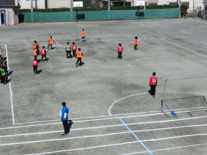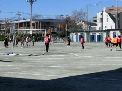 校庭ではサッカーのミニゲームを行いました。