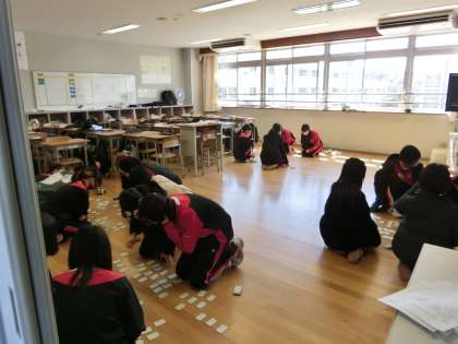 今回の学年レクはスポーツだけではありません。こちらは百人一首を行っている様子です。