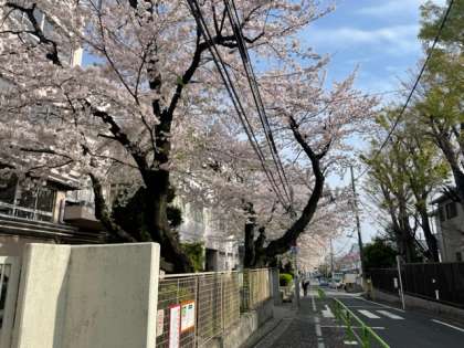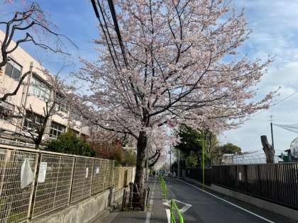 今日は始業式。満開の桜が出迎えます。