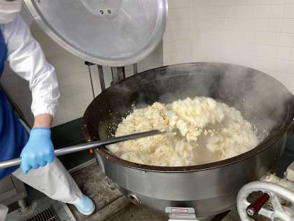 筍は切り方にひと工夫、穂先はスライスし、根元は1cm角に切りました。食感が楽しめるご飯です。今年度の1年生は給食をたくさん食べてくれます。作りがいがありますね。