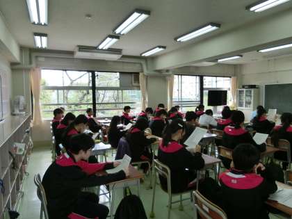 1年生の朝学活の様子です。静かに担任の先生の話を聞いていました。