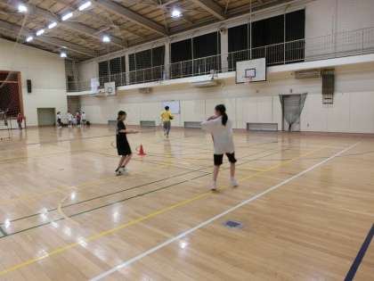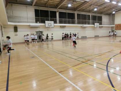 女子バスケットボール部の1年生の練習風景です。多くの1年生が仮入部に来ました。