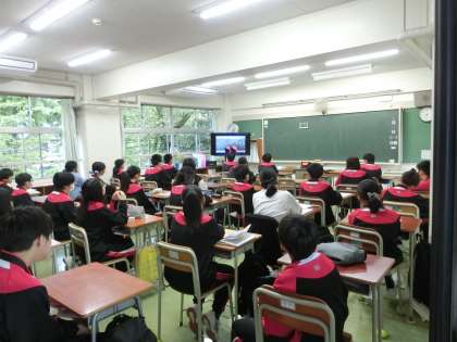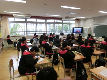 今朝は生徒朝礼を行いました。先日行われた各種委員会の報告を各教室に動画で配信いたしました。