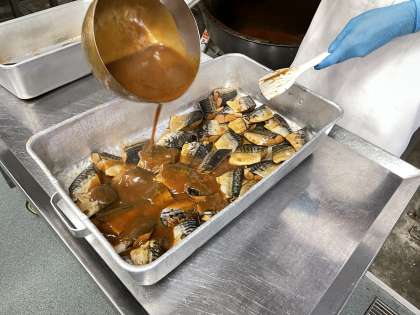 鯖を煮た煮汁を濾して、片栗粉でとろみをつけてタレを作り、鯖にかけて提供しています。