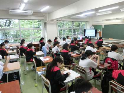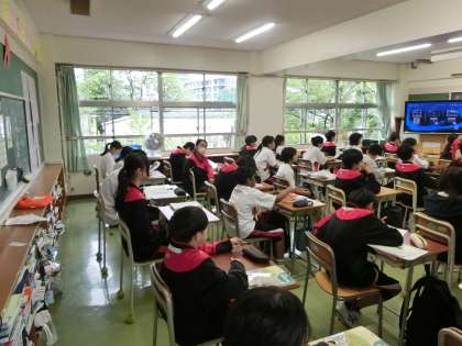 1年生の朝学活の様子です。今日の内科検診、今週から始まる運動会練習についてのお話がありました。