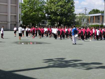 1年生の学年練習です。今日が初回なので体育の先生から全体への注意がありました。