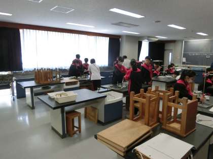 2年生の理科の実験の様子です。班で役割を決めて手順を確認していきました。