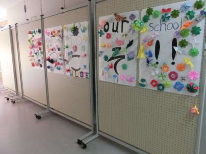 明日から3日間、アメリカのオレゴン州ポートランドのマウントテイバー中学校の生徒の皆さんが本校を訪問します。授業や部活動などを通じて交流を深めていきます。今日はその歓迎準備をいたしました。