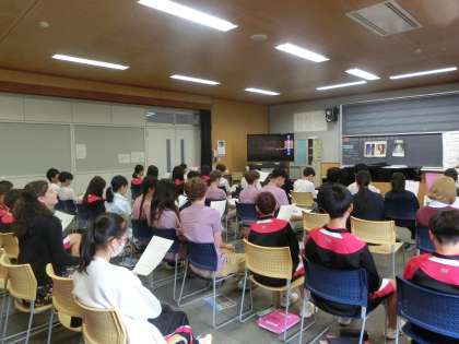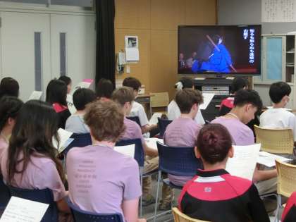 後半は長唄を学びました。最初は全員で動画を鑑賞しそのあとは一緒に歌ってみました。