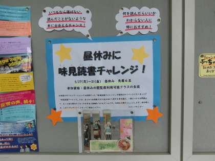 メディアセンターでは今日から31日(金)までの昼休みに、「味見読書チャレンジ」を行います。「味見読書チャレンジ」とはあらかじめ用意された本を選び、一冊につき4分間読み、もっと読みたくなったかを★で評価をつけるゲームです。今週の昼休み、それぞれの閲覧席利用可能なクラスの日に先着6名まで参加できます。是非チャレンジしてみてください。