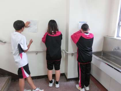 英語部の活動です。英文で説明された校内のスポットを探し、タブレットを使って写真に収める活動を行っています。さて全部見つけられたでしょうか?