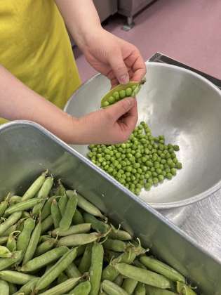 今日は年に一度のグリンピースご飯です。グリンピースを苦手とする人も多いのですが、今の時期は旬なので冷凍ものとは全く違う風味や食感を味わって欲しいと思っています。