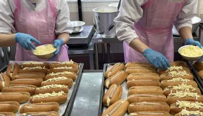 バターや牛乳にスパイスを加えて作ったベシャメルソースとウィンナーをパンに挟み、チーズをかけて焼いています。