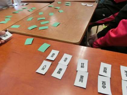 3年生の国語の授業ではトランプの神経衰弱の要領でカードを組み合わせて四字熟語を学習しました。