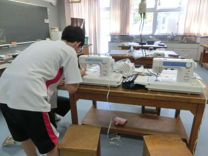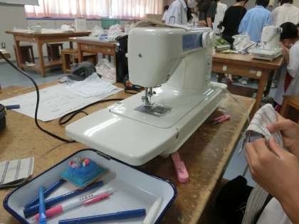 2年生の家庭科の授業です。今日はまずミシンを使ってみました。