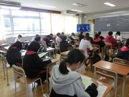 2年生の学活です。テスト範囲が配られ確認をしました。