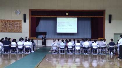 授業後には、体育館で協議会です。質疑応答では、忌憚のないご意見をいただきました。今後の授業にいかさせていただきます。