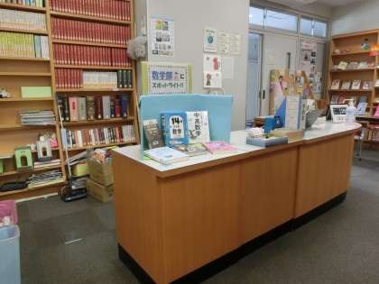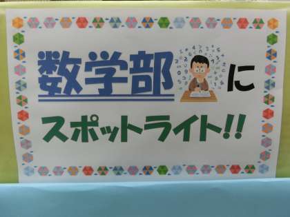 今月の部活動コーナーは「数学部」です。数学に関する本を揃えました。ぜひ手に取ってみてください。もちろん数学部以外の生徒もね。