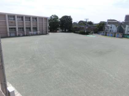 昼休みなのに校庭には誰もいません。今日はWBGTの値が基準値を超えたため屋外での活動を中止しました。
