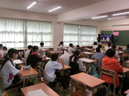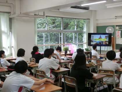 今朝は生徒朝礼を動画で各教室委配信しました。先日行われた各種委員会の報告を行いました。そのあとは表彰の様子を配信しました。