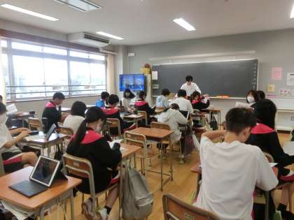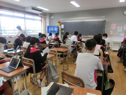 3年生の学活の時間では修学旅行のしおりのとじ込みを行いました。