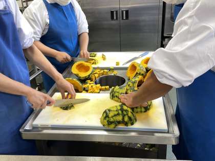 皮の食感が残りすぎないように、皮をむくところとむかないところどちらもあるようにしています。