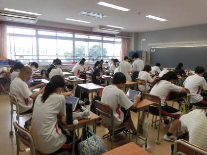 3年生の朝楽手の様子です。キュビナを利用して課題に取り組んでいました。