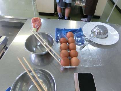 家庭科部の活動風景です。今日はオムライスづくりにチャレンジします。