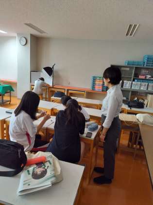 美術部では、3人の生徒が「ポスター作り」に取り組んでいました。