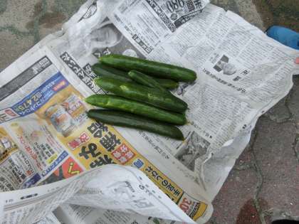 園芸部の活動の様子です。今日はきゅうりを収穫しました。