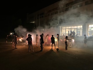 合宿、最後の夜を花火で締めくくっています。