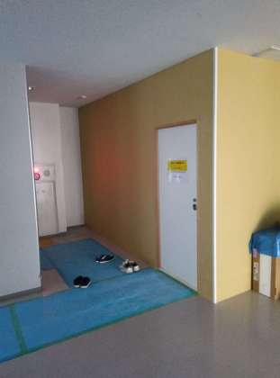 保健室前、給食室工事の様子です。順調に進んでいます。